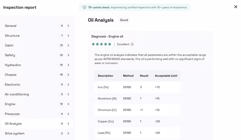 عندما نضيف هذا النوع من اختبارات تحليل الزيت إلى تقاريرنا المُعتمدة، فإننا نُساعد في مكنة المشترين على اتخاذ قرارات أفضل مبنية على بيانات دقيقة عن حالة المعدات الثقيلة المستعملة.