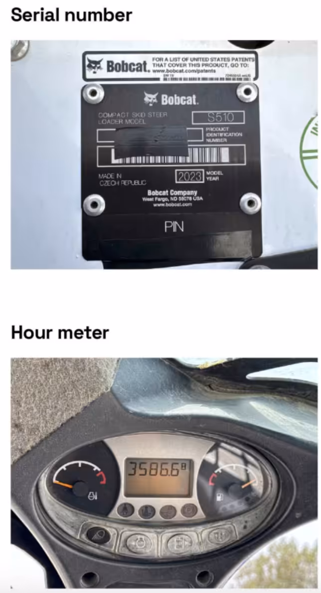 Using Makana.com’s 360° equipment view, the client’s team conducted a full online walkthrough of the Bobcat S510 through a virtual tour, rotating and zooming in on every angle of the machine, from the undercarriage and bucket teeth to the joystick controls and cabin structure.
